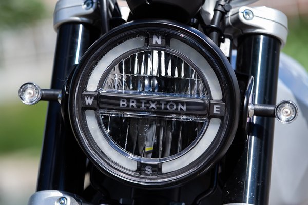 A másik, meghatározó dizájnelem a ledes, kerek lámpa - van benne kör, iránytű, célkereszt, Brixton logó, mint amikor sok jó ötlet közül nem volt szívük egyet sem kidobni, így belekerült az összes. A csinos, apró indexek tényleg olyanok, mint amilyeneket az épített motorokra szokás tenni, az ülés alá, a segédvázba süllyesztett hátsó lámpa pedig bizonyítja, hogy nem a múltból, hanem a custom kiállításokról merítették az ihletet.