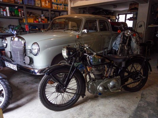 Ha már így esett, és hallottam menni az NSU-t, felvetettem, hogy következő héten bevágom otthon a Basa alkatrészeit Era nevű kombi Mercimbe, megint átmegyek hozzá, újra beröffentjük az OSL-t, és ha esetleg tényleg menni is tud, hazamotorozok vele. Ha én lábon át tudtam tolni a BSA-t őhozzájuk, annyit azért egy ilyen faszán felújított öreg csodának is ki kellene bírnia, hogy megteszi az utat lábon visszafelé. Ő meg jön utánam a Merkedásszal, aztán visszahozom haza. Így lett.
