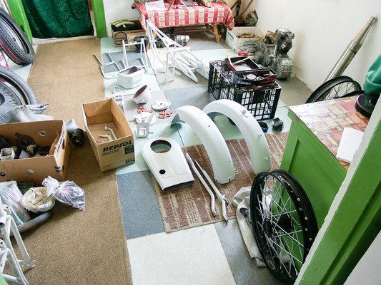 Éveken át tologattam, mint fél szemmel már az édességet leső kisgyerek a tányérjában még megevésre váró paprikáscsirke-szárnyat, nem tudom, mire vártam, talán a Messiásra, mert azt azért érdemes tudni, hogy az efféle szerkezetekhez Magyarországon nemigen akad úgynevezett – szerelő. Persze, imitt-amott vannak restaurátorok, én is ismerek három csodás fazont, Bakos Ricsit, Kalmár Tomit és Zilahy Zolit, ők némi unszolásra biztosan nekiálltak volna. Csak hát Ricsi alapvetően magyar motorokkal foglalkozik, s egy ideje felvette a profiljába a japán motorokat, no meg jellemzően magának restaurál, versenyez a kész géppel, aztán később eladja, ha vált másik kategóriára. Tomi amerikai járművekkel, főleg Indianekkel foglalkozik. Zoli is inkább magának restaurálgat, tömve van egyébként munkával.