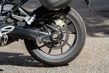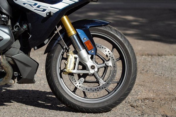 Felefelé eleve csak nagyobb gázállás és fordulatszám mellett működik szépen – ez valószínűleg a kardános erőátvitel nagyobb holtjátékának számlájára írható. Visszagangoláshoz pedig kényelmetlenül kell taposni a váltókart, az elektronika alig ad gázfröccsöt. Ezért a kuplung nélküli visszaváltásnál mindig az volt az érzésem, hogy meg kell erőszakolnom a mechanikát. Bár a fék érzetét és hatásfokát sok sportmotor is megirigyelné, a viszonylag nagy súly és hosszú tengelytáv egy bizonyos ponton gátat szab a sportolásnak. És ez pont jól is van így! Az R-hez hasónlóan az RS báját is az adja, hogy egészen lazán lehet vele komoly tempót menni, agyelhagyási kényszer nélkül.