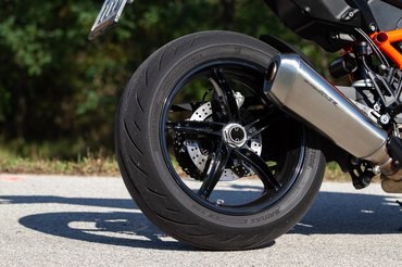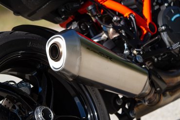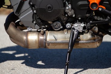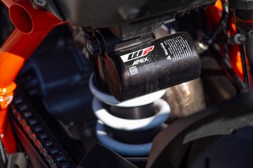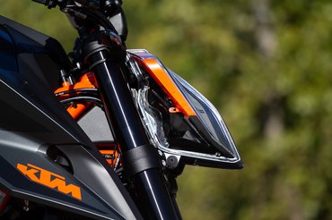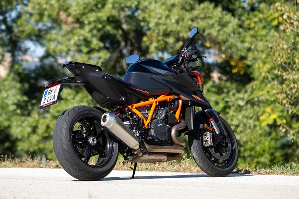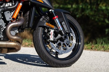 Pocskondiázni amúgy kihívás, ez a KTM csúcsmodellje, aminél odafigyeltek, ne legyenek rajta sittes dolgok, az első sárvédőtől a hátsó gumiig mindenhol nem csak simán jót, hanem a kéznél lévő legjobbat választották. Magura HC-1 kuplung, ledes fényszóró, pillekönnyű és nagyon szép felnik - abban a ligában, amiben a Tuono V4, az MT-10 vagy a Streetfighter V4 is játszik, egyszerűen nem adhatják lejjebb. A fék is a Brembo csúcsmodellje, a Stylema nyereg pillanatnyilag a legjobb utcán is használható darab, viszont a KTM és a Brembo között megromlott viszonyról árulkodik, hogy a fékcsövet már a spanyol J.Juantól vásárolják. Hátsó 240-es tárcsa és a kétdugattyús nyereg sem költői túlzás, más motoron első féknek is elmenne, de szükség van rá, ha el akarod rúgni keresztbe a 200/55-ös hátsót.