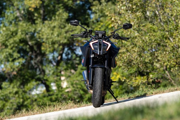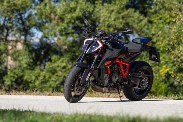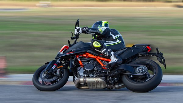 Talán éppen ezen a nem igazán számszerűsíthető téren a legnagyobb az előrelépés, a korábbi öttengelyű IMU-t lecserélték egy hattengelyűre, ami már önmagában javítja a kanyar ABS és a kipörgésgátló működését. Alapból három menetmód áll rendelkezésre, a Rain, a Street és a Sport, de ha már ilyen motort veszel, érdemes kipengetni a fullos elektronika felárát, amihez már jár a Performance és a Track mód is, amikben menet közben is kilőhető az egykerék kontroll és kapcsolható át az ABS Supermoto módra, amiben szabadon blokkolható a hátsó kerék. Ezek valóban nem a kezdőknek való opciók, de akinek kétségei vannak afelől, hogy szüksége van-e ezekre, annak semmi szüksége egy Super Duke R-re.
