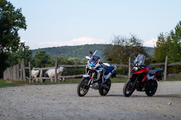 A V-Strom egy kiváló, sokoldalú motor, de a gyors, élményközpontú numerákon túl eszköztelen az Africa Twinnel szemben, melynek a jóságait akkor értékeli legtöbbre az ember, amikor már tíz órája motoron ül. Vagy amikor terepre téved, mert ott a V-Strom csak az utcai motorokhoz képest jó. A Honda hiába nagy batár, a magasan lévő kormánnyal és a nagy kerekekkel sokkal otthonosabb az aszfaltról letérve, felállva egyből érezni, hogy valóban foglalkoztak azzal, hogy úgy is kényelmes és jól irányítható legyen, és a dedikált offroad módokkal sokkal inkább alkalmasabb a terepjárásra. A Suzuki a kisebb kerekével, az utcaibb profilú gumijaival, a feszes futóművével esetlenebbül mozog a földutakon, az üléshelyzet (álláshelyzet?) sem az igazi ahhoz, hogy a bizonytalanságát testből kontrolláljuk, és ha ez nem lenne elég, a kikapcsolhatatlan ABS-ével teljesen el is veszi a kedvem az ilyesmitől. A Honda offroad képességei már-már a KTM-ekhez mérhető, miközben kényelemben, extrákban és presztízsben a BMW GS-sel is felveszi a versenyt.