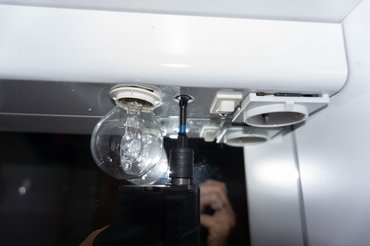 Utána jött a sisaktartó kiszerelése, a két 12 voltos géppel gyorsan haladtam, a GSR szinte mindenhol elég volt, de a GDS ledes világítása egyszerűen jobb - a burkolat mögött, a csövek és vezetékek között dolgozva is mindig oda világított, ahová kellett. A GSR viszont az adapterekkel az összes helyre odafért, ahol egyébként racsnis villáskulcsal tizedfordulatokkal kell kihajtani a csavart, ott ez két másodperc alatt végzett. Nagyobb géppel egészen biztosan nem fértem volna el. A GDS ütőerejére egyedül a szívócsonkot a blokkhoz fogó csavaroknál volt szükség, azokat soha nem bontottuk meg, ki tudja, hány éve nem nyúlt hozzá senki, ott már elvérzett a GSR 30 Nm-re - az ütvecsavarozó viszont azonnal lekapta őket.