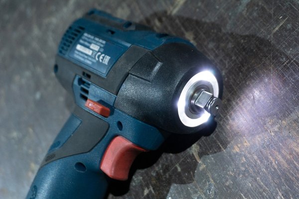 A tokmány körüli ledes világítás zseniális, eddig a legjobb, amivel valaha találkoztam - pislogó neonok alatt, félhomályos teremgarázsban szoktam szerelni, így ez számomra duplán fontos, pláne, ha elcseszett helyen vannak a csavarok. Bár a DeWaltnál hasonló módon három led világítja meg a munkaterületet, ez az egyenletes körfény nagyságrendileg jobb.