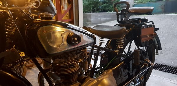 Kész volt a gyönyörű tank, beletettem (Hermosallal tömítettem, ami a büdös, Európában mifelénk már száz éve Hermetic tömítőanyag csehszlovák megfelelője, s volt itthon még az első, 1988-ban vett Steyr-Puchom óta egy tégellyel) a csapot, felszereltem az egészet, s hirtelen dzsárááááám, optikailag készen volt az NSU. Büszkén állt a (már jól tartó) sztenderén, rajta a két nyereg, a csíkozott tank, a szerszámos dobozok, a sebmérőkihajtás...