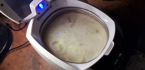 Hallani akartam, hogy megy. Éppen ezért a karburátorral folytattam a munkálkodást, szétszedtem a Graetzint, mert ha a gyújtással úgy el tudott bánni a gyűlöletes E5-ös benzin, ahogy elbánt, akkor a karbinak is biztos bevitt pár erős gyomrost. Ahogy sejtettem, fehér, belekötött gipsz borított mindent, vettem elő az ultrahangos mosót (a nevével ellentétben ez nem különlegesen zajos – bár eléggé az – hanem nagyon sok ezer hertzes frekvencián rezgeti azokat a tárgyakat, amelyeket az ember a kis mosókagylójában elhelyez).