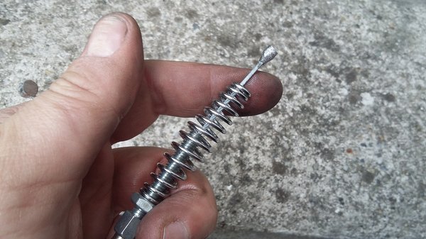 Ha már így alakult, hogy felszerelhetővé vált, a szerkezetből kitakarítottam a gumis rittyót, ami 1948-ban még talán elment zsírnak, majd friss kenőanyaggal összeraktam az egészet. A Veigel sebességmérő órához vett NSU-bovdenvég azonban nem stimmelt a kihajtáshoz, szerencsére szélesebb és vaskosabb volt a nyelv. Anyagot leszedni mindig könnyebb, mint rátenni – fél órát bíbelődtem a köszörűvel, meglett, nem volt vészes. Ez nem.