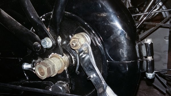 Ha legalább fél centiméternyit előrébb tudnám csúsztatni a kereket a vázban, akkor ki tudnék venni pár szemet a láncból, s ha csak annyit nyernék, máris illeszkedne a láncvédő. Elővettem hát a dremelt (azaz a koppintását) és nekiláttam. Itt újra egy teljes napnyi melóról volt szó, mire tizedmilliméterenként kiköszörültem annyit a vázból, hogy meg tudtam valósítani a tervemet. Nem csupán a tengelyfelfogatásokat kellett mélyebbre vájnom, egyben függőleges irányban megtartva a méretüket és a szögüket is, hanem a fékdobot az elfordulás ellen rögzítő pöcöknek a lyukát is. Túl pedig nem volt szabad köszörülnöm, mert ha itt sok anyag elfogy, meggyengül a váz, ami pedig a hátsó kerék táján nem játék.