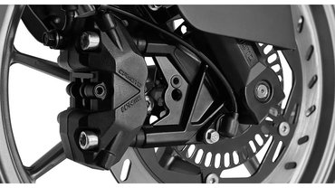 Elöl fordított villát használnak, a kerekek 17-esek, a lassítást ABS felügyeli. A hátsó kerék valószínűleg a kisebb ellenállás miatt ilyen vékony - illetve a 250-esekhez illő teljesítmény mellé nem is lenne indokolt a szélesebb gumi.