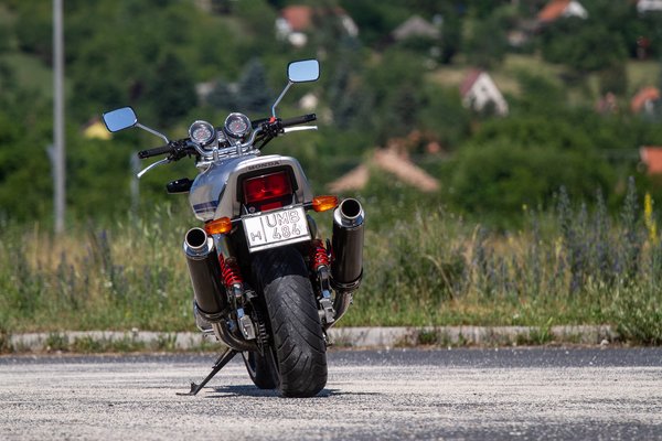 Erős kontrasztot alkot a váz megmunkálásával - más kortárs japán motorokon sem voltak feltétlenül szebbek a varratok, valószínűleg ekkoriban álltak át a japánok a hegesztőrobotokra, és eleinte erre voltak képesek. Egy ilyen kiegyensúlyozott, nagyköbcentis, karbis motor semmihez sem hasonlítható, ezt a fajta nyugalmat más meg sem közelíti. Nem fenyeget, nem piszkál, alapjáraton gurulva is tekintélyes - üvölt róla, hogy ez egy régi vágású muscle bike. Ezzel a kipufogóval szó szerint üvölt, furulya nélkül hangosabb, mint amit ideálisnak tartok. Ehhez a külsőhöz nem kell tomboló zaj, a távoli vihar halk morgása elég, hogy tisztelet övezze.
