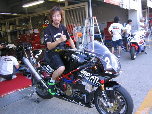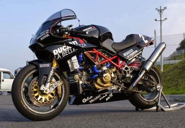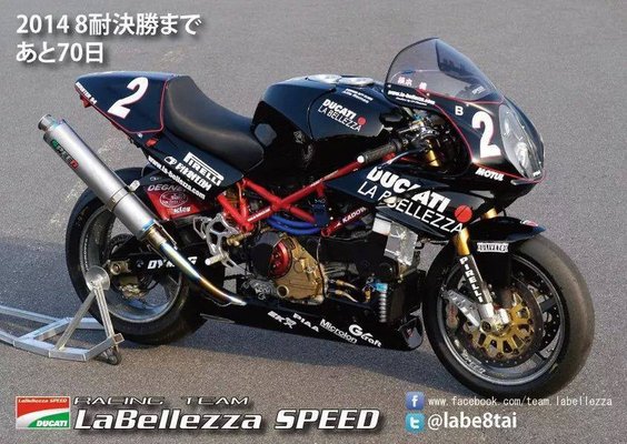 A La Bellezza Ducati Monster S4 megfejtése nem nehéz, egy kumamotói Ducati kereskedés és szeriz csapatáról van szó, akik mellékesben kipufogókat és más versenycuccokat gyártanak és fejlesztenek, illetve utcai- és versenymotorokat építenek. A Monstert 2003-tól 2005-ig használták, aztán 2009-ig egy 999R-rel mentek, majd jött a 1098R, végül a Panigale 1199, de annak már nem igazán jutott dicsőség, míg 2012-ben a 27. helyig jutottak, 2014-ben már a kvalifikációt sem tudták megugrani, 2016-ra pedig az egészet elengedték, a szabályok addigra már egyáltalán nem kedveztek a kis csapatoknak. A bolt viszont azóta is szalad, és teljesen jó fej módon válaszolgattak a kérdéseimre, a használt motorjaikat pedig ajánlom mindenki figyelmébe - Japánban elég más a használt járművek megítélése, de amit ők kínálnak, annak azért van respektje.
