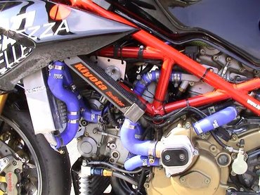 Módosították a villahidakat, hogy beférjen az Öhlins teló és a csutkakormány, Brembo versenynyergek kerültek fel, megnövelték a hűtőt és szilikon vízcsöveket használtak - a hűtő 998 RS-sel egyezik, de úgy általában elég sok alkatrész belekerült a 916 utáni érából, például egy csúszókuplung és kormánylengés-csillapító is. A végén lett 138 lóerejük, vagyis a 999 teljesítményét hozták, ráadásul megbízhatóan - elég sokat elárul a munkájukról, hogy a 200 lóerő körüli négyhengeresekkel szemben is megállták a helyüket.