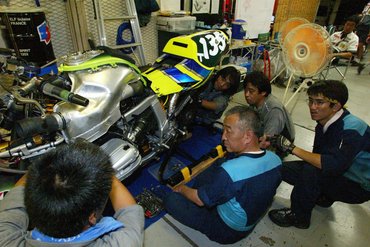 Na de hogyan került egy 1300-as motor a versenyre? A megoldás az XF2 kategória, melyben mindössze öt csapat nevezett, és végül háromnak sikerült is a kvalifikáció - rajtuk kívül a Boxer Sports Club BMW R 1100 S-e és a La Bellezza Speed Ducati Monster S4-ese jutott be, de ők jóval hátrébb végeztek, az 51. és 43. helyen. Akkoriban a FIM Endurance VB mezőnye mellett befértek a japán bajnokság privát csapatai is, csak ők nem kaptak világbajnoki pontokat - és a JSB1000, tehát a japán bajnoki kiírás mellett ott volt az XX-Formula Division 1 és az XX-Formula Division 2 is - az utóbbi a már említett három motorral. Míg a JSB1000-nek megtaláltam az egészen pontos kiírását, az XF2-ről alig van anyag - ebbe kis túlzással minden belefért, akár öt, hat vagy több hengerrel is, lényegében csak minimum súly volt megadva nekik, az is elég rugalmasan, illetve a legfeljebb 24 literes tank.