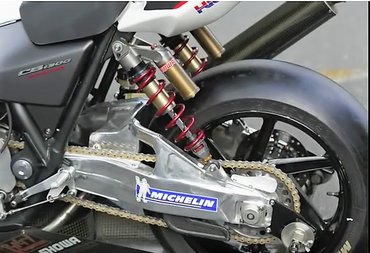 Abból gazdálkodtak tehát, ami volt, a La Belleza Ducatihoz és a Project Big-1 CB-hez képest alig nyúltak hozzá: pályaidomok, gyorstankolós benzinbetöltő, Brembo versenyfékek, radiális fék- és kuplungfőhenger, versenylábtartók, sportkipufogó, a Boxer Cup-os motorokhoz hasonlóan Öhlins futómű, néhány karbon elem, például a Telelever lengőkarjánál és pillekőnnyű JB Power Magtan felnik kerültek fel. Aztán mentek, ahogy a csövön kifért, boldogan fordulva a szelepfedélen. Azóta sem indult senki suzukai nyolcóráson sem léghűtéses, sem bokszermotoros versenymotorral.