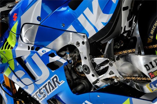 A Suzuki esetében a széles, de nagy csúcsteljesítményű motorblokk összekapcsolódik egy változtatható működésű vázzal, mely sokkal lágyabb a többiekénél, ráadásul magas a motor súlypontja, amivel az idei év Michelin gumijait olyan működésre tudják bírni, amire senki más nem képes. Az utolsó körökben pedig az addigra elfogyó üzemanyag (maximum 22 liter, nagyjából 16 kg) miatt a súlypont annyival lejjebb kerül, hogy az alacsony súlypont miatt önmagában fordulékonyabb lesz a motor, nincsenek rákényszerítve a nagy dőlésszögre, ezért a gumi kevésbé kopott részein tudnak fordulni. Még egy gondolat a működési tartományról: a yamahások közül egyedül Morbidelli használja a karbon lengőkart, mivel annyira lágy stílusa van, hogy a feltételezhetően szűkebb tartományú lengőkarral kiválóan tud együtt dolgozni.