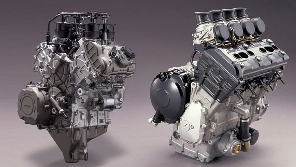 A soros elrendezés esetén széles lesz a blokk, a V-motorok esetében pedig hosszú. A V-motoroknál a négyütemű korszak óta számos hengersorszöget kipróbáltak már a konstruktőrök, így építettek 65°-65,5°-75°-75,5° és 90°-os motorblokkokat, bár a 90°-os blokkon kívül nem erősítették meg soha a konkrét adatot. Ma már mindenki 90°-os blokkot épít, tavaly az Aprilia még 75°-os blokkal ment. Még ha a teljesítménye hasonló is tud lenni egy szűk blokknak, nagyon sok problémát tud okozni. A V-motorok esetében a szívórendszer és injektorsorok a hengerek között helyezkednek el, aminek szűk hengersorok esetében egyszerűen nincs hely. Ennek következtében ezeket a blokk fölött kell elhelyezni, ám ettől a V-motor nemcsak hosszú, de magas is lesz. A magasra emelt hengerfejek miatt a blokk súlypontja is magasra kerül. A Honda alkalmazta azt a technikát, hogy a 800-as ~75°-os blokkot kinyitotta 90°-ra, amikor megnövelték a hengerűrtartalmat és ezzel együtt megnőtt a hengerfejek tömege és mérete, hogy a blokk súlypontja ugyanott maradjon. Ezzel szemben becslések szerint a Ducatinak van (blokk és motor is egyben) a legmagasabban a súlypontja, ők kérték a 81mm-es furatot is, hogy a 800-as blokkon használt hengerfejet átrakhassák a nagyobb blokkra, ami így magasabb lett.