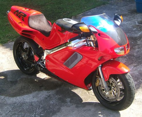 A Honda ugyanis hagyományosan négyütemű gyártóként definiálta magát, és a gyorsasági világbajnokságban is meg akarták mutatni, hogy verhetőek a kétütemű motorok. A szabályok viszont nem engedték, hogy a Honda V8-as motorral induljon, ezért egy trükkhöz folyamodtak, és kettesével összenyitották az egymás melletti hengereket, és ovális dugattyúkat építettek be. Így technikailag V4-es lett a blokk, de hengerenként nyolc szeleppel (négy szívó, négy kipufogó), két gyertyával, és két hajtórúddal, hogy a dugattyú ne billegjen.