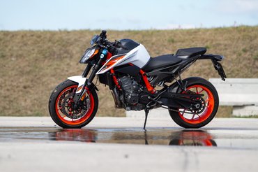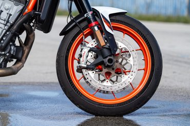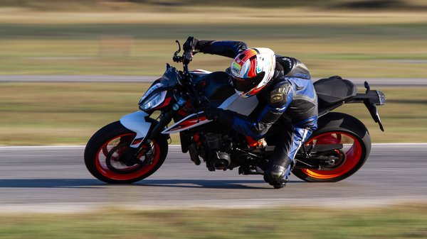 A sóherség ellenére a 890 R természetesen jobban gyorsul, jobban fékez és szebben kanyarodik a 790-esnél. A Street Triple-nél is komolyabb Brembo Stylema/MCS párosítás dimenziókkal jobban adagolható a J. Huan rendszernél, és a futómű-geometria is némileg hegyesebbre van konfigurálva. Még a hiperagilis Street Triple-nél is mozgékonyabbnak tűnik, anélkül, hogy nagyobb tempónál instabillá válna. Az ergonomiája hagyományosan szupermotósabb: szélesebb és közelebb van a kormány. Ezért is fekszenek annyira a KTM-nek a lassú, rövid kanyarok.