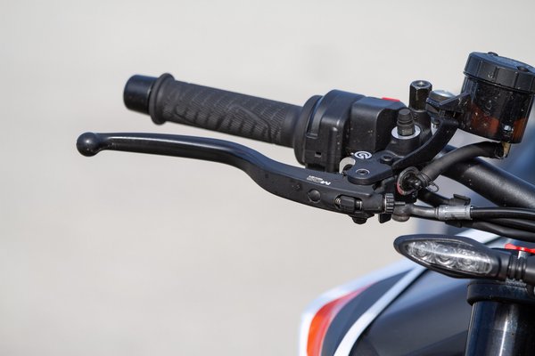 Az S jelölésű 95 lóerős alapmodell lökettérfogata 660 köbcentire csökkent, ennek a legegyszerűbb a futóműve és az elektronikája is. A középső R verzió már 756 köbcentis és 118 lóerős illetve van csúszó-kuplungja is. Futóműve teljesen állítható, és a fékei is radiálisak, de az elektronikája elég egyszerű, és a műszerfala sem TFT – pedig a frissítés előtt még az volt. A költséghatékonyság mellett ennek nyilván az az oka, hogy eszedbe se jusson nem a csúcskivitelt választani. Hiszen az RS 123 lóerős, és mindent belepakoltak, amit sok, ezres nakedhez még csak rendelni sem lehet. A felső polcos Brembo fékrendszer (M50 első nyergek állítható radiális MCS pumpával) és versenypályás használatra is alkalmas futómű (Showa Big Piston/Öhlins STX) mellé alapáron jár a frissített modellnél mindkét irányba működő gyorsváltó, a hasidom és az üléstakaró is. Az elektronikai csomag azonban a TFT kijelző ellenére nem a legmodernebb. Bár ötféle menetmód is rendelkezésre áll, az IMU hiánya miatt a kipörgés- és a blokkolásgátló sem dölésszögérzékeny.