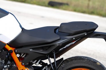 Az egészen érződik, hogy magamfajta hülyék találták ki és programozták fel az egészet. De nem csak a mókához értenek ám Mattighofenben, hanem a lehúzáshoz is. Az előbb említett beállítások ugyanis csak a felárért telepített track pack-kel elérhetőek. A spúrság netovábbjaként a (790-esen széria) gyorsváltót is extraként kell megvásárolni. Tehát az egyébként hibátlanul működő gyorsváltóval és track pack-kel együtt már körülbelül másfél millióval drágább az R az alapváltozatnál. Amit az állítható WP futómű és a csúcs Brembo nyergek is nehezen indokolnak. Hiszen még mindig nem a Power Parts katalógusban lévő WP Apex Pro cartridge-ot és hátsó gátlót kapod, hanem egy egyszerűbb kivitelt.