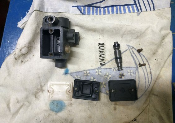 Ezen felül szépen lassan berendelgettem minden fő dolgot - variót, primert, membránt, vízpumpafelújítót, olajpumpa-meghajtó szíjat, féktárcsát, betétet, fékpofát, légszűrőt, zárszettet, bovdeneket, első-hátsó futóművet, valamint Guld szerzett nekem egy új olajpumpát meg 17,5-ös karburátort - egy szemmel látható méretű doboznyi apróság várja a beépítés. Közben folyamatosan egyeztettem Gépátvétel Gáborral, hogy melyik a jó szimering, milyen dugattyúval rakjuk össze, stb...