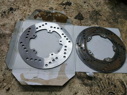 Az első gátló simán felment a helyére, ott nem kellett sokat gondolkozni, viszont az NG márkájú tárcsa feladta a leckét. Nem volt méretpontos, és nem akart felülni a kerékagyra, végül egy kis köszörüléssel és melegítéssel sikerült ráhúzatni a csavarokkal, aztán majd a leszedés legyen a Jövő Zombi problémája.