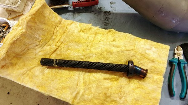 Nem maradt el a homokfúvás sem. A hőálló fekete, amivel le volt tüsszentve, elég ragaszkodó típus volt, nyilván a leömlőn ékeskedő krátereket hivatott elfedni. Nem is tette rosszul a dolgát, de én páva kinézetet szerettem volna. Legalább messziről, az idom alatt meg úgysem látszik. Vissza minden a tiszta vasig, csiszolás, sok csiszolás. Fater már kezdte elveszteni a türelmét a levegős szerszámok hangjával szemben. Elcsiszoltam rá egy fél Würth-katalógusnyi korongot. Maszk is volt rajtam, és így is napokig éreztem a torkomban a munka kellemes ízét. De megérte. Minden perce megérte.