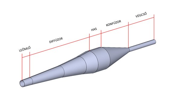 El is kezdhetnénk meghatározni a hosszméreteket és a keresztmetszeteket a csövünkhöz, de mint említettem, itt azért egy nem éppen könnyen számolható termodinamikai problémával állunk szemben a nyomáshullámok hőmérsékletfüggő terjedési sebessége miatt. A leömlő szakaszon nem ritkán előfordul az 600-700 Celsius körüli hőmérséklet, azonban ahogy haladnak tovább a gázok, az expanziós szakaszban beeshet a hőmérsékletük a 300 Celsius érték közelébe, mígnem a konfúzornál a nyomás növekedésével együtt ismét felfelé kúszik a hőmérséklet is. Nem egyszerű a helyzet.