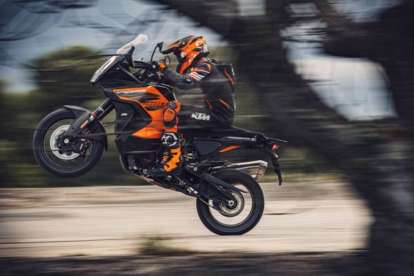 Mellette természetesen még egy sor segédlet áll a motoros rendelkezésére. Ilyen a dőlésszög-érzékelős kipörgésgátló, a kanyar- és offroad-ABS, valamint az offroad-kipörgésgátló. Alapfelszereltségként járnak a választható menetprogramok és az automatikusan kikapcsoló irányjelző. Feláras extrafelszerelés ellenben például a visszagurulás-gátló, valamint a gyorsváltó. A félaktív WP Apex futóművet hattengelyes IMU látja el adatokkal, a Suspension Pro csomag pedig még több beállítási lehetőséget kínál. A megállást elöl két 320 milliméteres, hátul egy 267-es Brembo tárcsa segíti, elöl négy-, hátul kétdugattyús nyereggel.