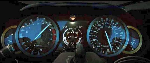 Egy olyan részletet emelhetünk ki, amit alaposan szemügyre tudunk venni: az analóg műszeregységet. Persze a sebesség- és fordulatszámmérő között egy TFT-kijelzőt is láthatunk. Jelzésértékű az is, hogy 180 mérföld per óra, vagyis 290 km/h környékén akadt ki éppen a kilométeróra.