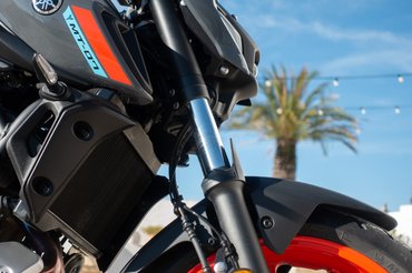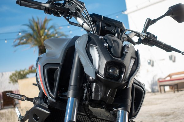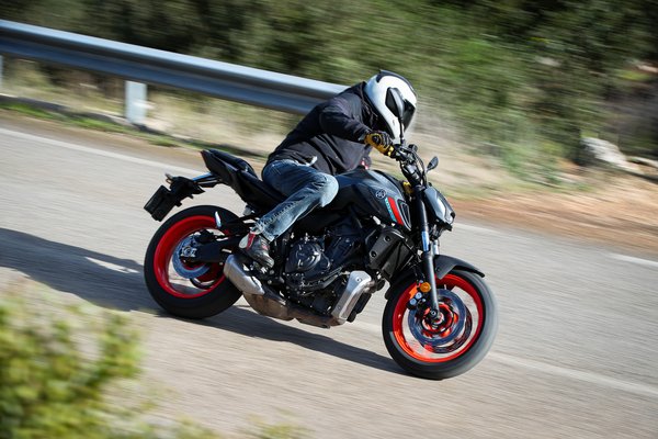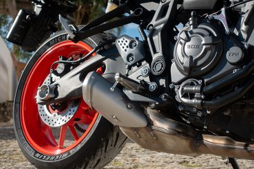 Nem mintha sokat számítana ez a kis anomália, ahogyan a cikk elején is írtam, MT-07 nem a katalógusadatokról szól. A 67 Nm igen szépen húz - 6500-nél van a nyomatékcsúcs, a 73 lóerőt 9000-nél adja le, a kettő között pedig ott az élményzóna. Az erő és a csibészség kézenfogva érkezik, már a középtartományban megvan tűz, jó érzéssel el lehet neki tolni, és közben átjár az önfeledtség. Van zaj, vibráció, nyers élmény, miközben nincs csúszókuplung, hiányoznak a mindenféle gátlók, kontrollok és határolók, az egyetlen mesterséges védőháló az ABS, de az is egy szimpla kétcsatornás rendszer, dőlésszögérzékeny okosság nélkül. Bár a modern elektronikák már két kategóriával lejjebb is jelen vannak, az MT-07-nél nem volt hiányérzetem.