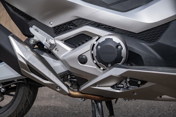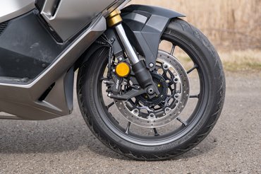 Bár a Forza 750 és a TMAX 560 építési elve azonos, tehát kéthengeresek, a blokk teherviselő elem, rendes futómű és fék van alattuk, a megoldásaik teljesen eltérőek. A Yamaha pörgős karakterű blokkot épített, a rugóstagot fektetve rakták be, a váltó egy fokozatmentes CVT, a hajtás pedig egy fogazott szíjjal jut el a hátsó kerékhez. A Honda ezzel szemben egy nyugodtabb, sokkal nagyobb, elékelt járású, nyomatékra hangolt kéthengeressel állt elő, amelyhez egy duplakuplungos automata tartozik, és a szekunder hajtást lánccal oldották meg. Szíjhajtást egy szebb megoldásnak tartom, csendesebb, gondozásmentes, tisztább, nem fröcsköli össze láncsprével a felnit, nem kell pucolni, kenegetni. A Forza tulajdonosoknak azt tanácsolom, szereljenek fel egy láncolajozót, hamar visszahozza az árát, és rengeteg macerát megspórol.