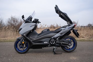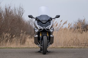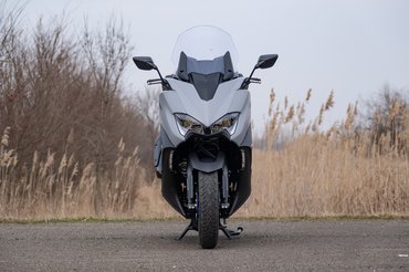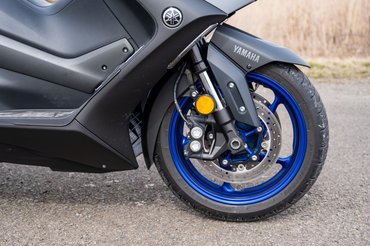 A TMAX sikerét nem is a robogók között erősnek számító kéthengeres blokkra vezetném vissza - olyanja például a Burgman 650-nek és a Silver Wing 600-nak is volt -, hanem a motorokerékpáros értelemben vett sportos vezethetőségre. Amihez kell egy rendes, kellően merev váz, jó súlyelosztás, és le kell faragni a rugózatlan tömegből, vagyis fel kell számolni a klasszikus robogófelépítéssel járó konstrukciós problémákkal. Mert ezek híján rendes futóművet sem lehet tervezni hozzá.