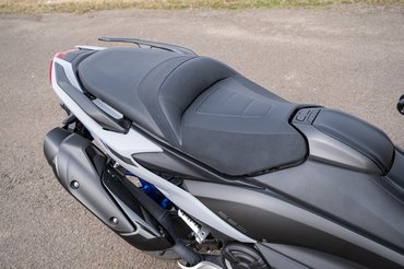 A tuti váz másik áldozata a trepni, ugyanis míg egy klasszikus robogón össze tudod ütni a bokádat, vagy éppen a lábaid között bármit szállíthatsz, ezeknél ott van középen a tank, meg ott fut a váz, hogy az eleje se tekeredjen, úgyhogy már nem tudod felakasztani a nagybevásárlást a térded közé. A TMAX pakolhatósága egyébként jobb, lehet, hogy a rakterek között literre nincs nagy különbség, de a Yamaha szélesebb és laposabb ürege jobban kihasználható, van benne szőnyeg, hogy ne karcolódjon meg a sisak, illetve a hátrafelé nyíló ülés is megkönnyíti a matatást.
