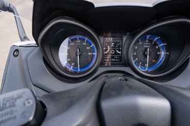 A TMAX egyértelmű erőssége a megjelenés, minden szögből jobban néz ki, a hátsó lámpa pedig világbajnok a robogók között. Egyébként mind a kettőt Olaszországban tervezték, csak mintha a Yamaha dizájnereinek a munkájába kevésbé szóltak volna bele a nyomasztó japán vezetők. Rájük ülve - mármint a motorokra, nem a japán vezetőkre - aztán fordul a kocka, a Yamaha ugyan nagyon prémiumnak van beharangozva, de a kapcsolói például olcsóbbnak hatnak, illetve a klasszikus körműszerek közé bepréselt monokróm kijelző is egy történelemóra a Honda színes TFT-je után.