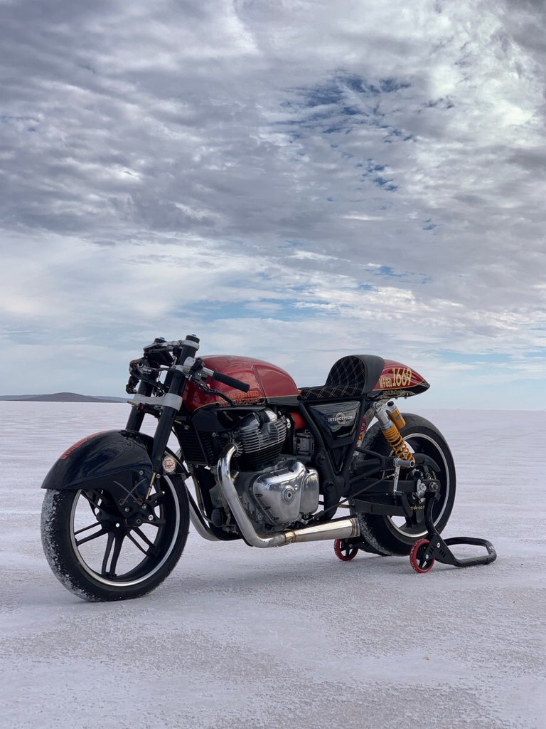 Ahhoz, hogy egy Royal Enfield Interceptor 650 ennyivel menjen, bele kellett nyúlniuk alaposan, módosították a vázat, kovácsolt dugattyúkat építettek be, portolták a hengerfejet, módosították a vezérműtengelyeket, eltávolították a kiegyensúlyozótengelyt, átépítették a váltót, beletoldottak a lengővillába és Öhlins futóművet raktak alá.