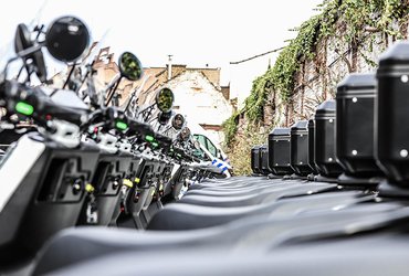 A brüsszeli rendőrségi robogóit a szirénán kívül extra szélvédővel, plusz USB töltőkkel és egy nagy, 46 literes, vízhatlan alumínium dobozzal szerelték fel.