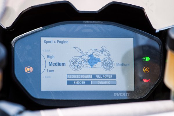 A menürendszere nekem piszok bonyolult, végtelennek tűnő beállítási lehetőséggel. Külön állíthatod a kipörgésgátlót, az egykerekezés gátlót, a motor karakterisztikát, meg még ki tudja mit, ráadásul mindezt vagy négyféle módban. Persze van még lehetőség személyes beállításokra is, és egyes beállításokat talán valami sohortcut módon is elő lehet hívni, de ennyi idő egyszerűen kevés volt a kiismerésére. Tényleg negyedórákban lehet mérni, amennyit programoztam ebben a fél napban, hogy fel tudjam szippantani az elejét. Persze, persze ez az egykerék csak a leghülyébbeknek szempont, meg full illegális is. De a jegyzőkönyv kedvéért legyen meg, hogy szinte minden az, amit ezzel a motorral csinálni érdemes. Miért? A sportmotor-paradoxon miatt.
