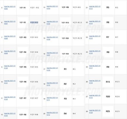 A Yamaha nem kicsit gurított, a sportmotorjait jelző YZF-R sorozatot végig levédette, YZF-R1-től YZF-R9-ig, illetve hozzácsapta még az R15, R20 és R25 neveket is, mintha az összes létező méretben készülnének sportmotorral.