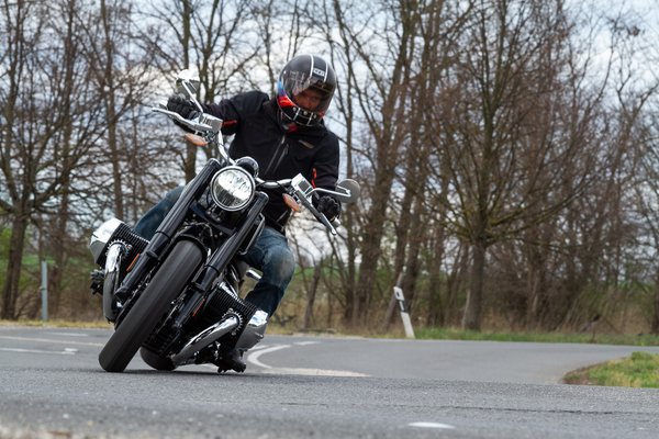 Nem húzták túl, 91 lóerős, éppen csak kicsit több, mint a Harley 107 köbinches (1746 köbcentis) Milwaukee-8-a, és ahhoz hasonlóan forogni sem szeret, már hatezer előtt leszabályoz. Bezzeg a nyomaték! A 158 Nm már a Harley 114-es (1868 cm3, 160 Nm) blokkjának a ligája! Az indítás is önálló műsorszám, egy gombnyomás, és életre kel a műszer (kulcsnélküli, ugye), egy pöccintés az önindítóra, majd hatalmas röffenéssel és rázkódással kel életre, elsőre meg is ijesztett, hogy mindjárt oldalra vágja magát a főtengely mozgására, miközben a kormány szabályosan csapkod. Alapjárat felett már azonnal tol, aztán 3000-nél el is éri a csúcsot, és míg gyorsítasz, fickósan remeg, de amint megvan az utazósebesség, és visszaengeded a gázt, varázsütésre kisimul - hatosban, 90-100 km/h körül gurulva egyszerűen annyira sima, hogy vakteszten még a sornégyet is benyögném.