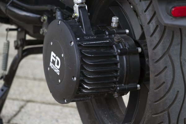 Mindenhol, de tényleg mindenhol a legegyszerűbb megoldást választották, a motor sem egy BLDC, mint a legtöbb elektromos robogón, hanem egy aszinkron motor, ilyen rendszerű van egyébként a Tesla Model S-ben is. Ezeknek az előnye, hogy viszonylag olcsók, és lehet vele vitorlázva, motorfék és gázadás nélkül, lendületből gurulni. Sík vidéken, laza forgalomban ez a legjobb energiaspórolási módszer. Az aszinkron motorok hátránya, hogy a hatásfokuk elmarad a BLDC vagy az állandó mágneses váltakozó áramú motoroktól - például azoktól, amilyeneket az Energica és a Harley Live Wire is használ -, illetve a visszatáplálást is csak körülményesen lehet megoldani rajtuk. A Daytonánál nem is oldották meg, egyszerűen nincs.