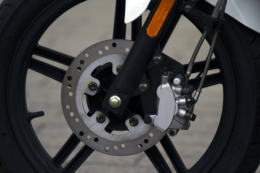 A futóművet és a fékeket sem bonyolították túl, elöl 16-os, hátul 14-es kerék van, tárcsafékekkel, fémfonatos fékcsövekkel, kombinált fékkel - ez utóbbi szintén spórolás, hiszen előírás kötelezi a gyártót, ha ABS-re nem futja, legalább kombiféknek lennie kell. A futómű sem érzéki, enyhén sprőd, úthibán ráz, de például a hasonló felépítésű Honda SH125 is feszes a magyar utakra. Valószínűleg ezzel lehetett összefüggésben a lerohadásom is, a motor a visszavitel során hol indult, hol leállt - az utolsó pár kilométert vegyes üzemben, részben tolva tettem meg. Mint kiderült, az oldalsztender kapcsolója hullott szét - erre még Gépátvétel Gábor is, aki a kínainál csak az elektromos járműveket szokta nagyobb elánnal fikázni, csak annyit mondott, hogy ez sajnos bármivel előfordulhat.