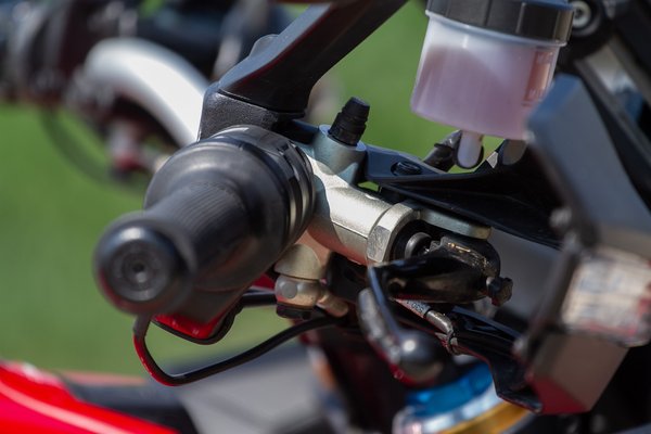 Aztán ott vannak a gyári fűthető markolaton a kis vájatok, ahová a versenymotorokon befekszik a drót, amivel lekötik őket az elfordulás ellen. Finom utalások, nem is kell őket komolyan venni, de ezek az apróságok már azelőtt megteremtik a hangulatot, hogy ráadnád a gyújtást. És ha már gyújtás: a kapcsolók is jelzik, hogy ez még a fanatikus ducatisoknak szólt, aki japánon nevelkedett, már az indításhoz és a markolatfűtés kikapcsolásához is segítséget fog kérni.