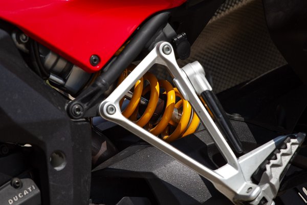 A Testrastretta 11° blokk a 1198-ból származik, lényegében a 1098-as Testrastretta Evoluzione V2-esének a továbbfejlesztett változata, kisebb szelepösszenyitási szöggel és felkészítve arra, hogy együttműködjön különböző menetbiztonsági elektronikákkal. A 1198-hoz képest leszedálták, és most elsősorban nem arra gondolok, hogy a 170 lóerőből mennyi maradt (150), hanem az egész karaktere sokkal békésebb lett. Erős, de nem gyilkos, sokkal kulturáltabb, mint amire számítottam. Alacsony fordulaton is kényelmesen lehet vele bóklászni, nem rángat, nem darabos, kimondottan kellemes és visszafogott. Ötezres fordulatnál már kikacsint, hogy minden, ami eddig történt, csak altatás volt, és hétezer felett jön a hátbakúrós megindulás és az üvöltözés. A jelenlegi divat egyébként egészen más, az újabb modellek lentről nagyobbat tolnak, de mint mondtam, ez még nem arról szólt, hogy a GS-nek legyen egy olasz alternatívája. Be is jött, és pár évvel később a bajorok mentek inkább utána az S 1000 XR-rel.