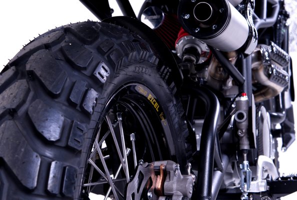 Megkülönböztetik ugyanakkor a Mavericket a többi Spitfire-től a Haan által készített felnik, amelyeken Mitas E7+ gumik feszülnek. Nem túl bütykösek, így aszfalton sem kimondottan kényelmetlenek, cserébe viszont könnyebb terepen is elboldogulnak. A dupla csövű kipufogót ugyanúgy magasra emelték, mint a szintén Spitfire-szériás Blackoutnál.