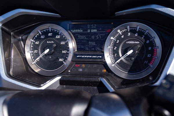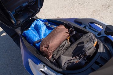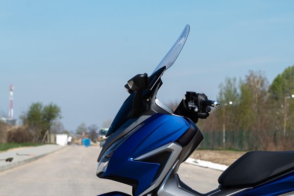Raktér van bőven, az ülés alá befér két sisak, plusz szériában jár a nagy hátsó doboz - ráadásul egyikhez sem kell kulccsal hadonászni, az maradhat a zsebben, elég csak a gombot nyomni. A tekintélyes méretű kesztyűtartó simán elnyeli a tepsi méretű telefonomat, illetve a nevének megfelelően kesztyűtárolása is alkalmas, még a hosszúszárú sportkesztyűm is befér, a záródása viszont hitvány. A kulcsnélküli indítás mellett a másik legfontosabb extra az elektromos plexiállítás, amit még a Forza 750-ről is lespóroltak, ezen pedig alapfelszereltség. Ezek után érthetetlen, hogy a fékkarok miért nem állíthatóak.