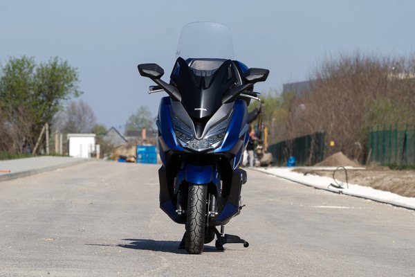 Ezt a 300-350-es kategóriát először az olaszok lépték meg még a Piaggio Beverly 300-zal és 350-nel, és hamar bebizonyosodott, hogy ez az igaz út: annyival könnyebbek az ötszázasoknál, hogy 60-70 km/h-ig ugyanúgy mennek, miközben sokkal kezesebbek és takarékosabbak. Az idénre 350-esre növelt Forza megfutja a 140 km/h-t, és az erősebb Sym MaxSym 400 is csak 120 felett kezdett határozottan ellépni. Ez a dinamika már jóval több, mint a túléléshez szükséges minimum.
