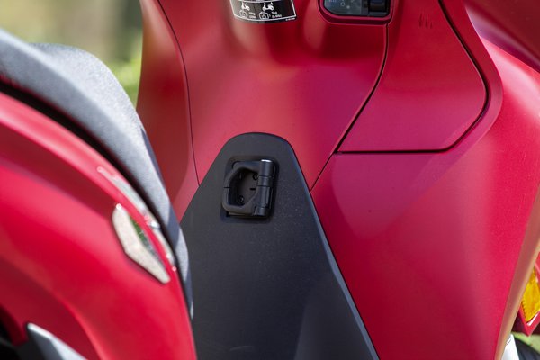 A 350-essel ez már közel sem olyan egyszerű, van ugyanis kipörgésgátló, ami a huligánkodásra elveszi a tüzet. Ezt amúgy ebben az esetben támogatom, nem a stuntriderek a célközönség, a többiek pedig hálásak lesznek, ha csúszós úton nem firkál a hátsó kerék. És ha már szóba kerültek a szupermotók: az SH-nak is ugyanazok a kompromisszumai. Ugyan megfutja az autópálya-tempót, de szélvédelem nélkül az már közel sem akkora buli, kényelemben nem veszi fel a versenyt a díványokkal, és pakolni is nehezebb. Az ülés alá egyetlen sisak fér be, a kesztyűtartót kitölti egy telefon meg egy pénztárca, a 35 literes, színre fújt hátsó doboz viszont már feláras extra. A kulcsnélküli indítás viszont alap, és a gyári dobozzal is kapcsolatban van, vagyis annak a nyitásához-zárásához sem kell előbányászni a kulcsot, elég csak nyomni a gombot. Egy közepes bevásárlás azért letudható vele, van akasztó a szatyornak, amely így elfér a lábak között a sík taposón.