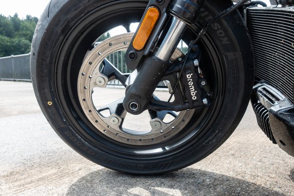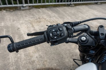 Az elektronika és infotainment nem lett elspórolva. Egy 4 colos kör alakú kijelzőn látunk mindent, amihez csak kedvünk van és még annál is többet. Szerencsére nem zsúfolták túl a GUI-t. Könnyen áttekinthető és jól csoportosíthatóan lehet rendezni a számunkra érdekes információkat. A full kontakt élményhez viszont telepíteni kell Android vagy iOS alá a H-D saját appját és a sisakunkba egy kommunikátort. Ha ezek megvannak, térképet, média tartalmakat, hangvezérlést és teljes motor-mobil integrációt kapunk cserébe. Mindenre gondoltak, de leginkább arra, hogy ez kesztyűben is jól kezelhető fizikai gombokkal legyen elérhető. A biztonsági kiegészítőkből minden belekerült, amit egy hattengelyes IMU támogathat. Kanyar ABS (C-ABS), dőlésszög függő kipörgésgátló (C-TCS) és gázadás kontrol (C-DSCS), illetve guminyomás figyelés. Mindez előre, az adott üzemmódokhoz konfigolva: Sport, Road és Rain, ebben a sorrendben puhulva. Ezen kívül van lehetőségünk két saját beállításra is, melyek ezután bekerülnek a gyors üzemmódválasztó menübe. A kipörgésgátló dedikált gombot kapott (úgynevezett Rossz Akarok Lenni gomb), hogy bármikor megszabadulhassunk tőle, ha firkálni támadna kedvünk.